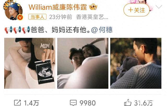 早上,陈伟霆何穗一起发文并且晒出B超照、孕期照、和儿子的合照官宣得子:“爸爸、妈妈还有他。” 二人在2021年被拍到共同返回住所,恋情曝光,中间还被曝出分手与复合的消息,直到去年二人罕见合体亲密旅游。